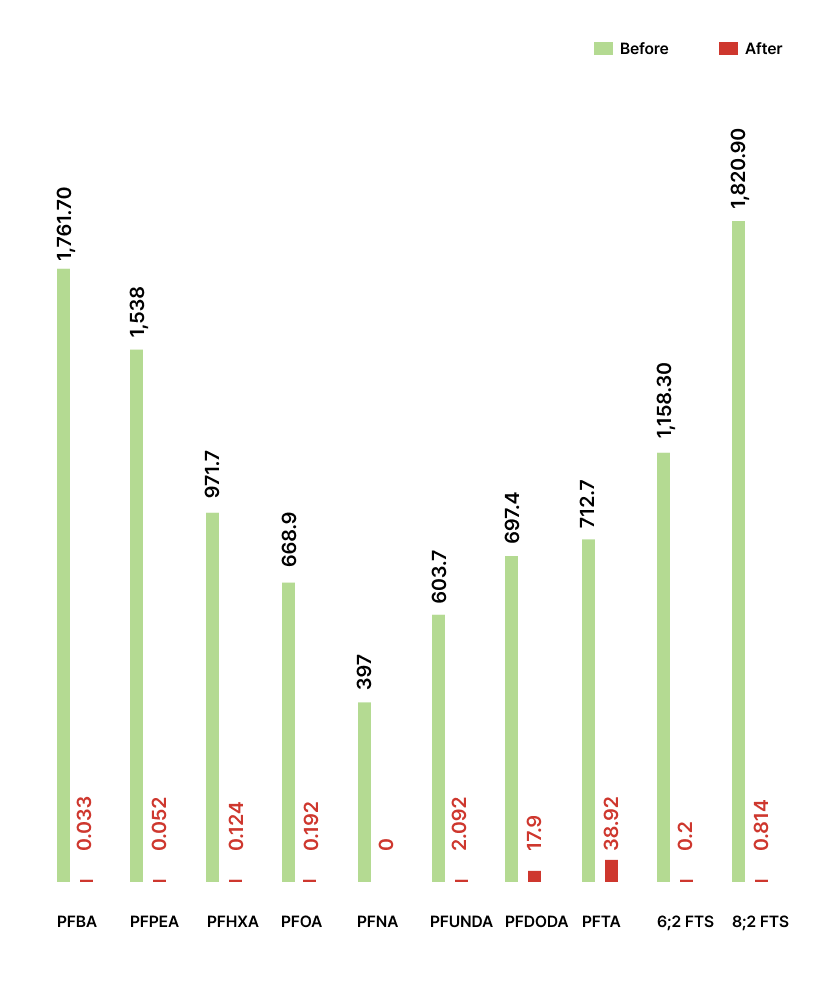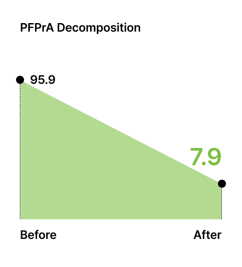 Complete degradation to non-detectable levels confirmed for over 11 PFAS species of varying chain lengths in actual wastewater
