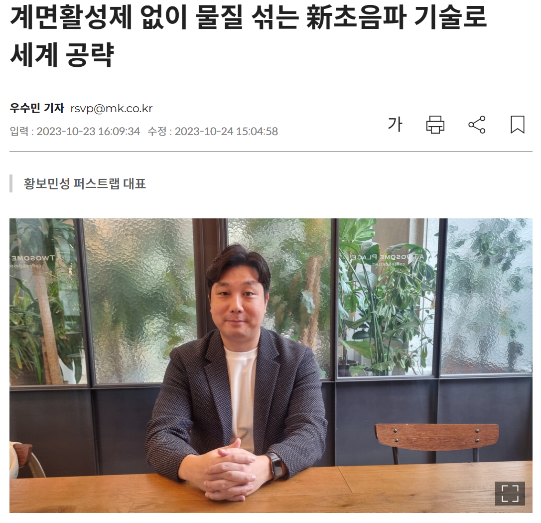 23년 10월 23일 매일경제 지면기사'계면활성제 없이 물질 섞는 新초음파...